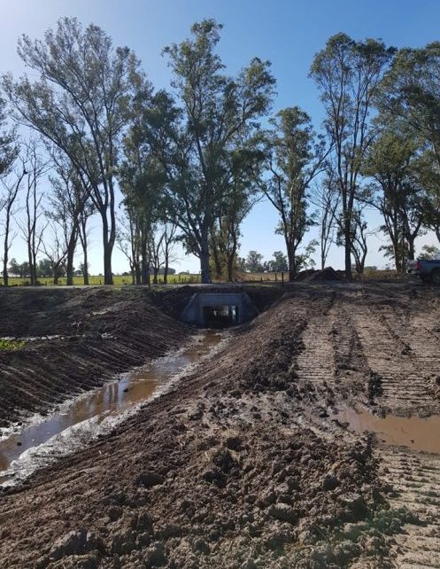 Con diversas maquinarias pesadas se construyen en este sector una serie de saltos disipadores y se instalan varias alcantarillas que ayudarán a drenar el agua de los campos hacia su pendiente natural y los arroyos aledaños, evitando así la inundación de parcelas productivas y de los caminos secundarios y terciarios.