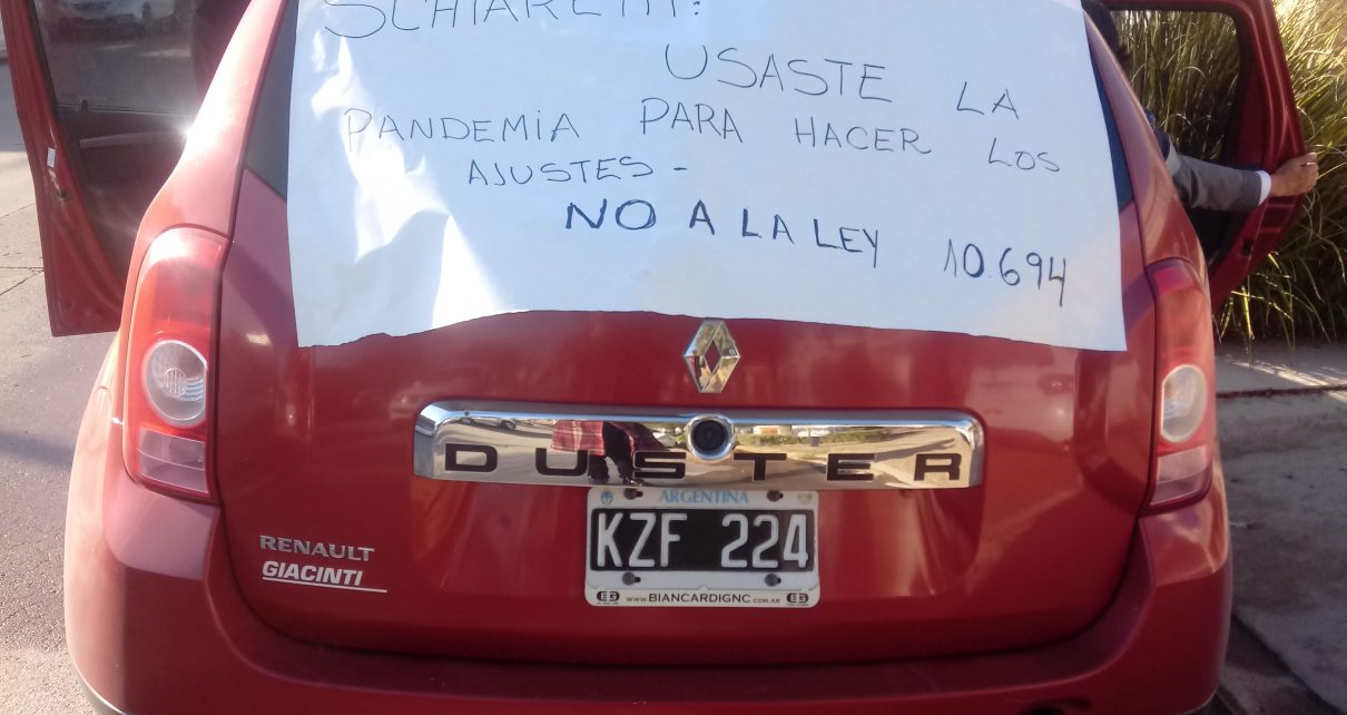 Con una marcha en autos y tocando bocina -tal como lo hizo el personal de la salud el lunes-, los docentes nucleados en UEPC se manifestaron en Marcos Juárez contra la reforma jubilatoria impulsada por el ejecutivo provincial y aprobada por la Legislatura provincial hace unos 10 días.