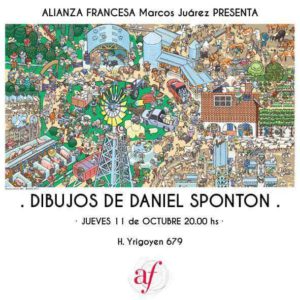 El jueves 11, a las 20, la Alianza Francesa, en su sede de Yrigoyen 679, inaugura una muestra de dibujos de Daniel Spontón, muestra que cuenta con 13 paneles con dibujos del artista cordobés que la Editorial Martinière de París ha publicado en los libros Enquêtomania y Enquêtomania 2, con textos de Valérie Sansonnet.